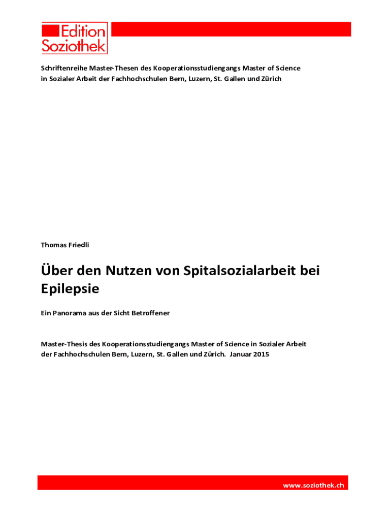 Schriftenreihe MasterThesen des Kooperationsstudiengangs Master of Science in Sozialer Arbeit der Fachhochschulen Bern, Luzern, St. Gallen und ZrichThomas Friedliber den Nutzen von Spitalsozialarbeit