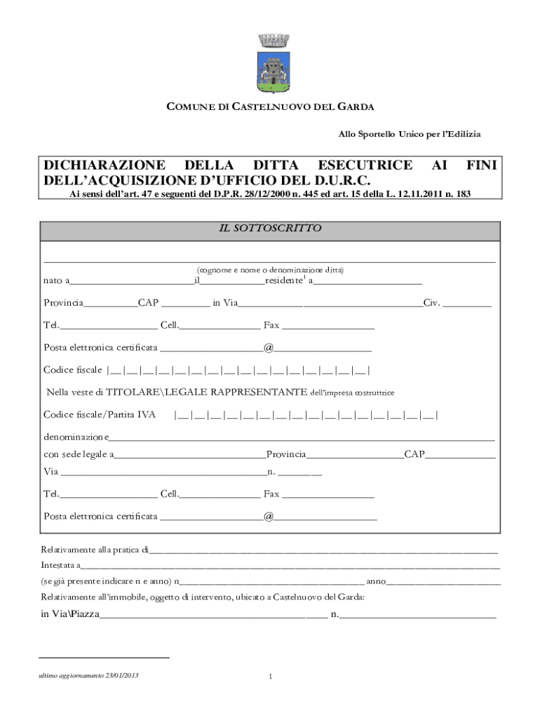 Ottieni il gratuito Dichiarazione ai fini dell'acquisizione d'ufficio del DURC