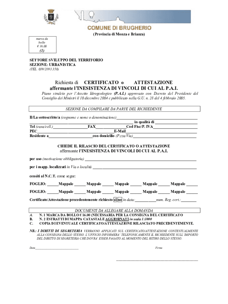 Ottieni il gratuito RICHIESTA DI CERTIFICATO DI DESTINAZIONE ... - comune brugherio mb