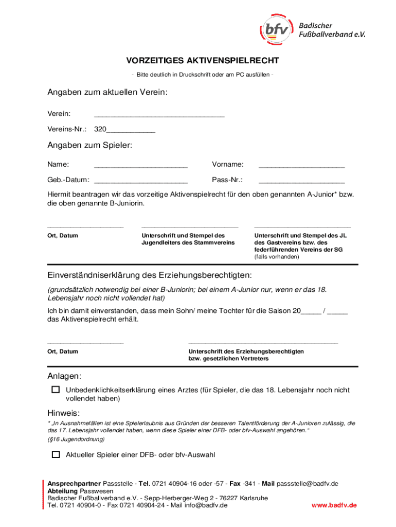 Holen Sie sich kostenlos Hiermit beantragen wir das vorzeitige Aktivenspielrecht fr den oben gena...