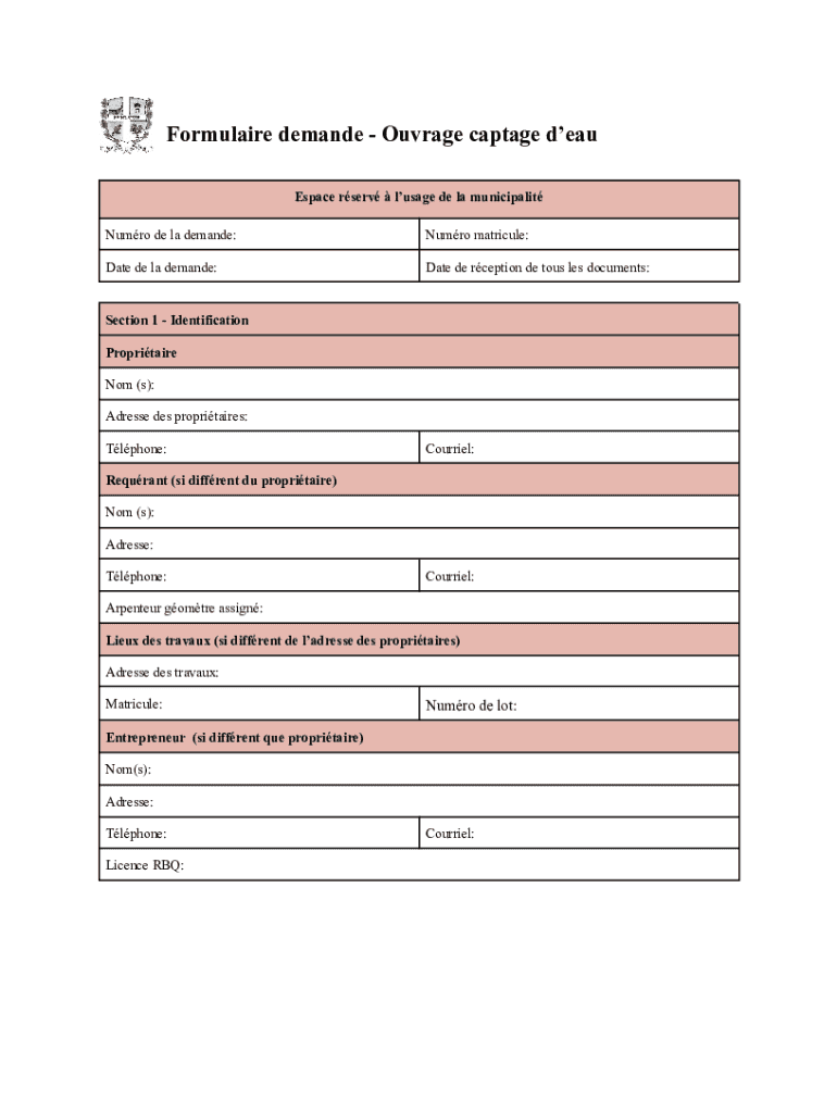 Obtenir le gratuit Installation ou modification d'un systme de captage d'eau ...