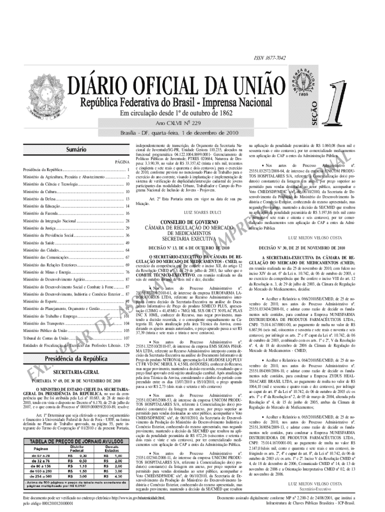 ISSN 16777042Ano CXLVII N o 229 BrasliaDF, quartafeira, 1 de dezembro de 2010 independentemente de transcrio, do Oramento da Secretaria Nacional de Juventude/SGPR, Unidade Gestora 110.235, alocados