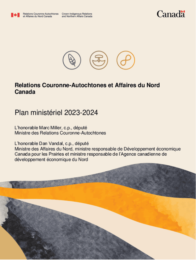 Relations CouronneAutochtones et Affaires du Nord CanadaPlan ministriel 20232024 Lhonorable Marc Miller, c.p., dput Ministre des Relations CouronneAutochtones Lhonorable Dan Vandal, c.p., dput Ministre