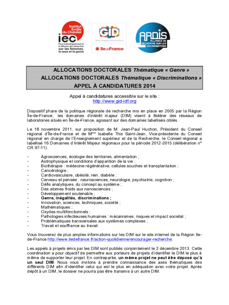 Obtenir le gratuit appel a candidatures pour l'attribution de contrats doctoraux