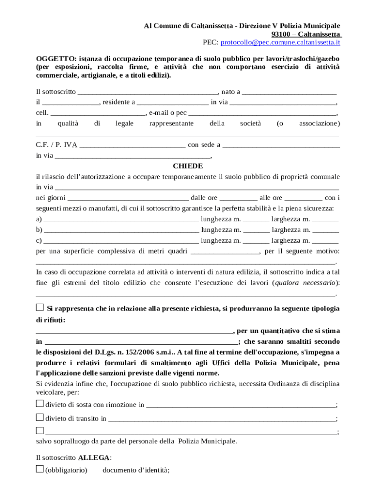 Occupazione suolo pubblico form: A comprehensive guide to understanding and filling out the application