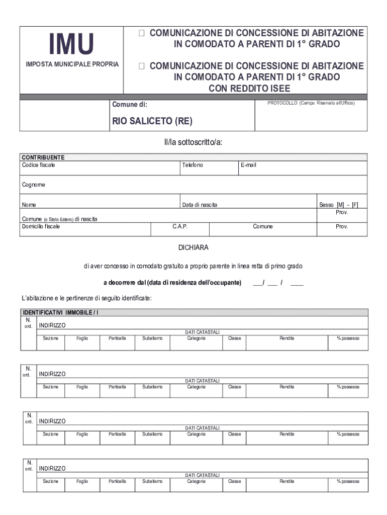 Ottieni il gratuito Comunicare la concessione in comodato a uso gratuito di un ...
