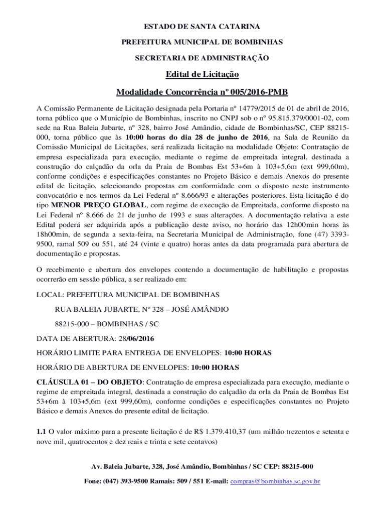 Obtenha o gratuito Licitaes e Editais de Bombinhas (SC)