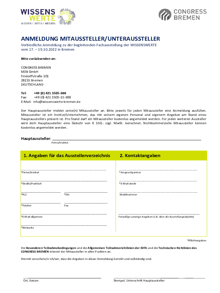 Wie fülle ich meldung mitaussteller - wissenswerte-bremende aus?