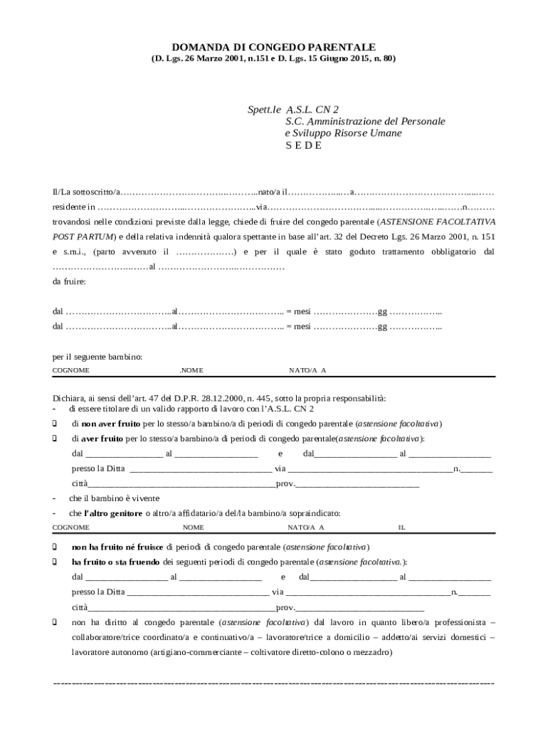The congedo parentale su base oraria. ... is a writable document that can be filled-out and signed for certain purpose. Then, it is provided to the actual addressee in order to provide specific info and data. The completion and signing can be done in hard copy or with a suitable tool e. g. PDFfiller. Such tools help to complete any PDF or Word file online. It also allows you to edit its appearance depending on your needs and put legit digital signature. Upon finishing, the user sends the congedo parentale su base oraria. ... to the respective recipient or several of them by mail and even fax. PDFfiller offers a feature and options that make your template printable. It has various options for printing out appearance. It doesn't matter how you'll file a form - in hard copy or by email - it will always look professional and clear. To not to create a new editable template from scratch all the time, turn the original document into a template. Later, you will have a customizable sample.