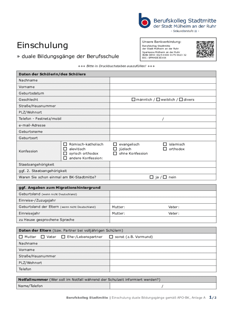 Welche Informationen müssen auf Einschulung - Mülheim an gemeldet werden?