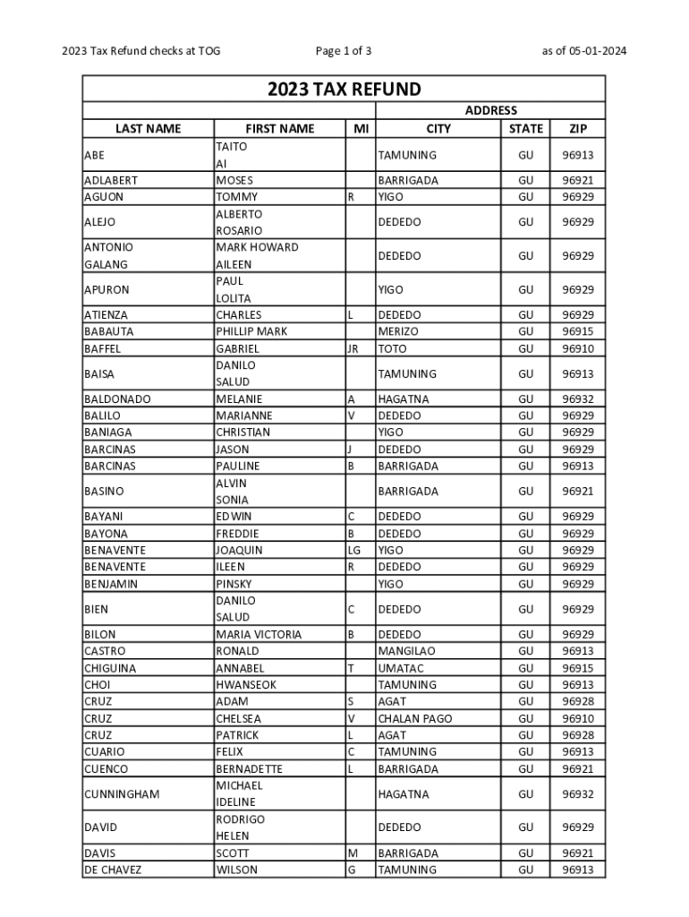 Get the free 2023 TAX REFUND - doa guam