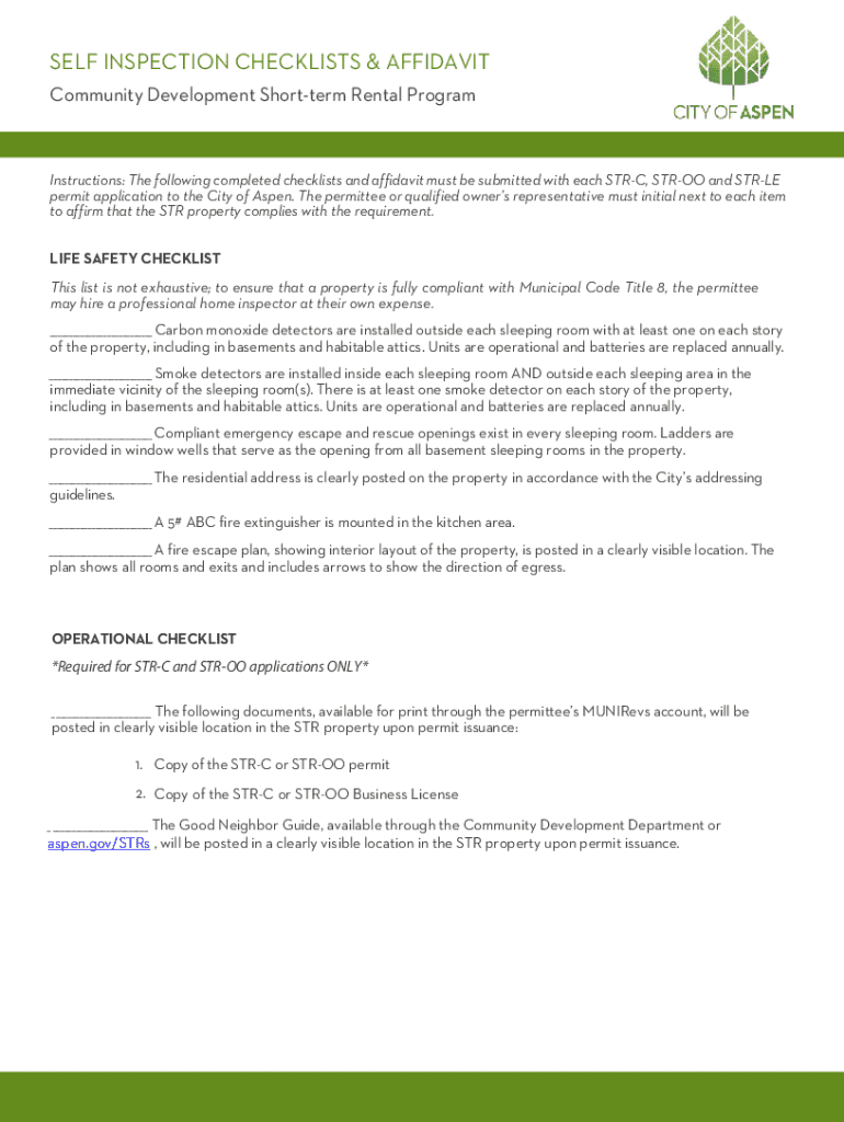 Get the free Town of Telluride Short-Term Rental Self-Inspection Affidavit