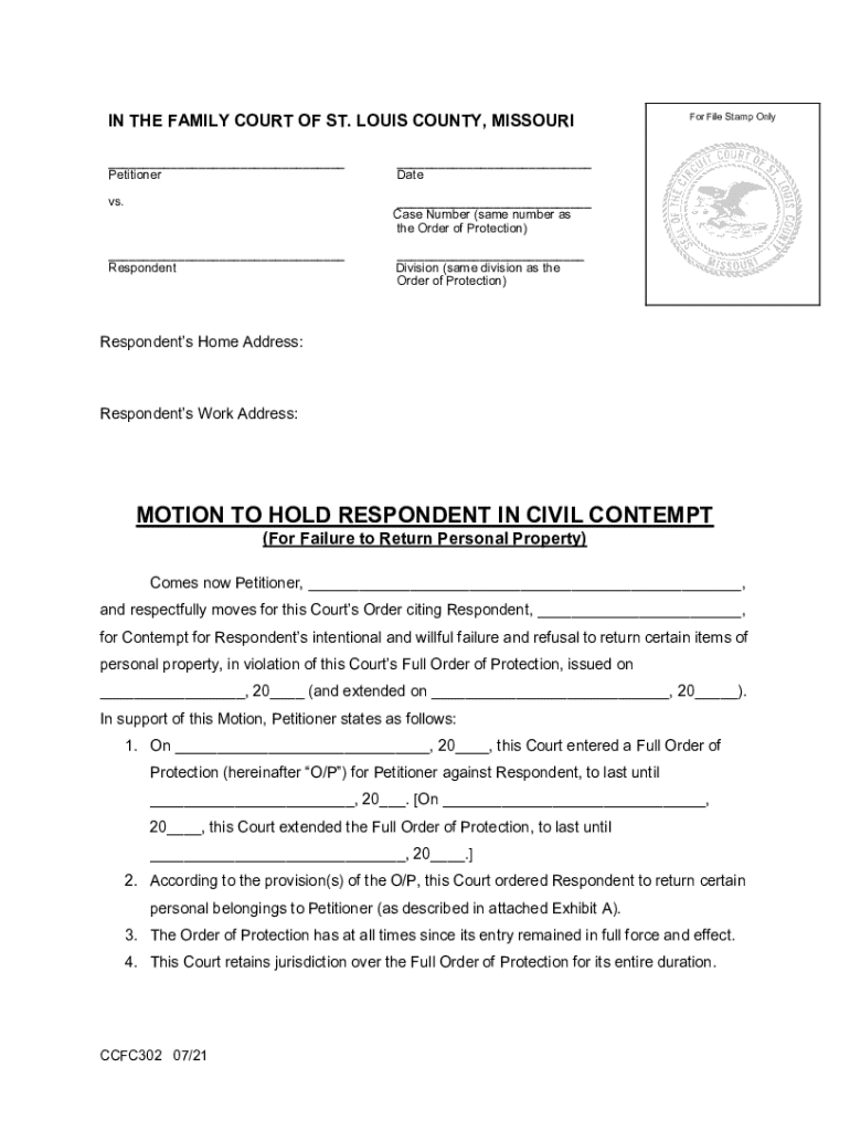 Get the free Ex Parte Order of Protection - Adult - Missouri Courts