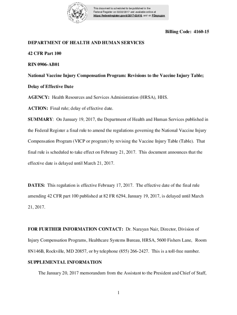 Get the free 1 Billing Code: 4160-15 DEPARTMENT OF HEALTH AND HUMAN ...