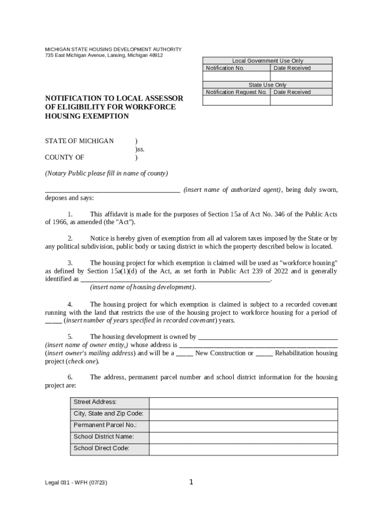 What is MSDHA Notice to Assessor Workforce Housing Affidavit.docx Form?