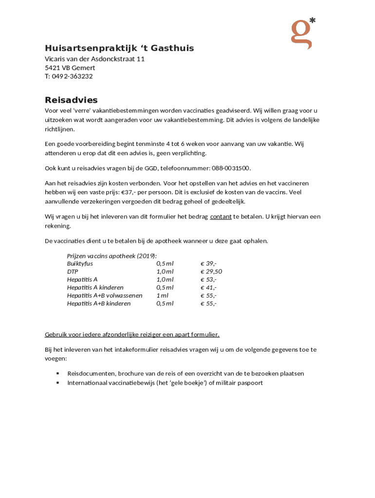 Instructions for the form Huisartsenpraktijk 't Gasthuis