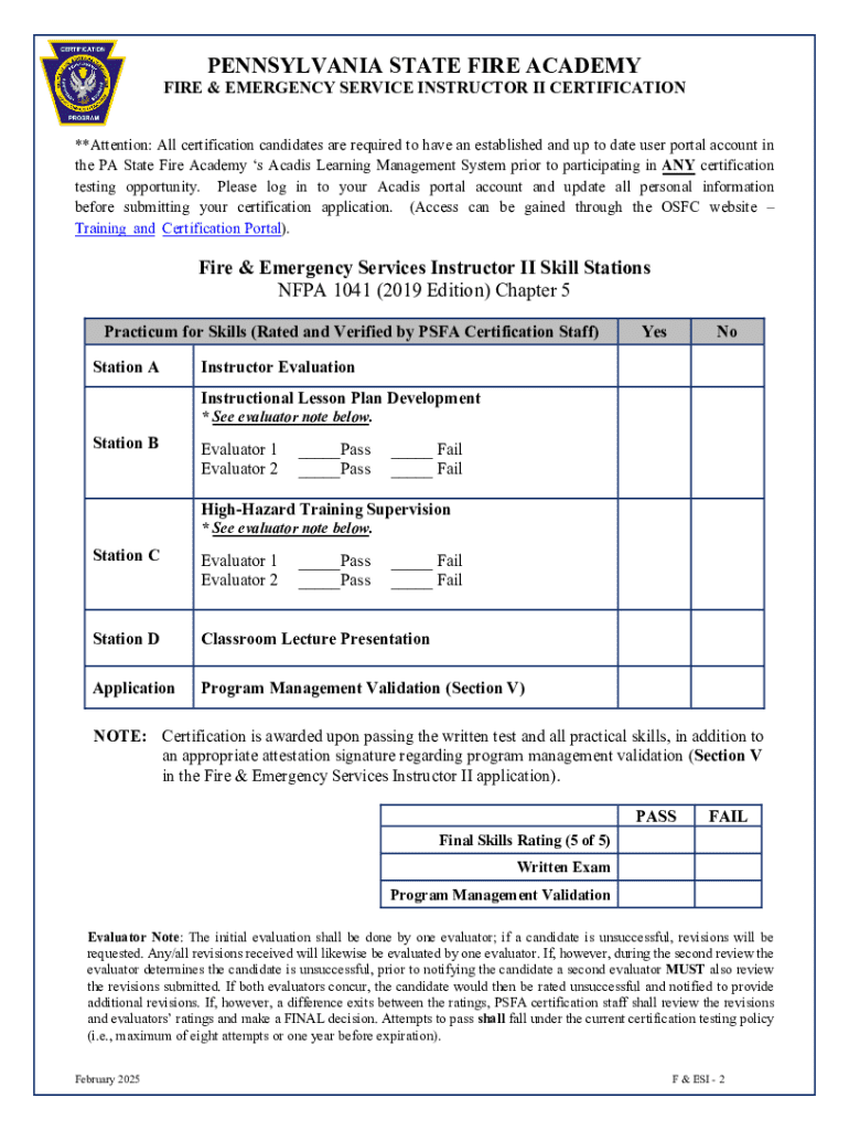 Get the free Fire and Emergency Services Instructor II Skill Sheets