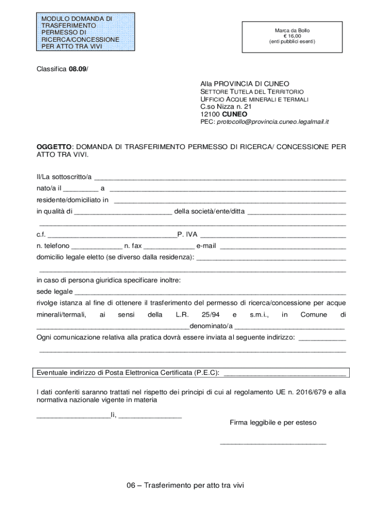 Ottieni il gratuito 06 - trasferimento per atto tra vivi
