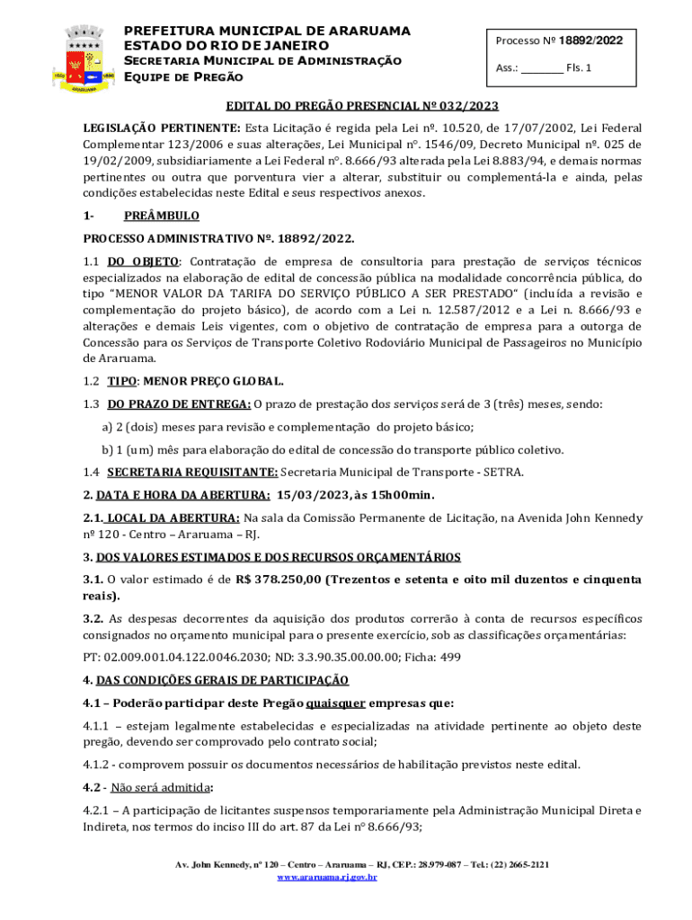 Obtenha o gratuito 1 DO OBJETO: Contratao de empresa de consultoria para prestao de servios tcnicos