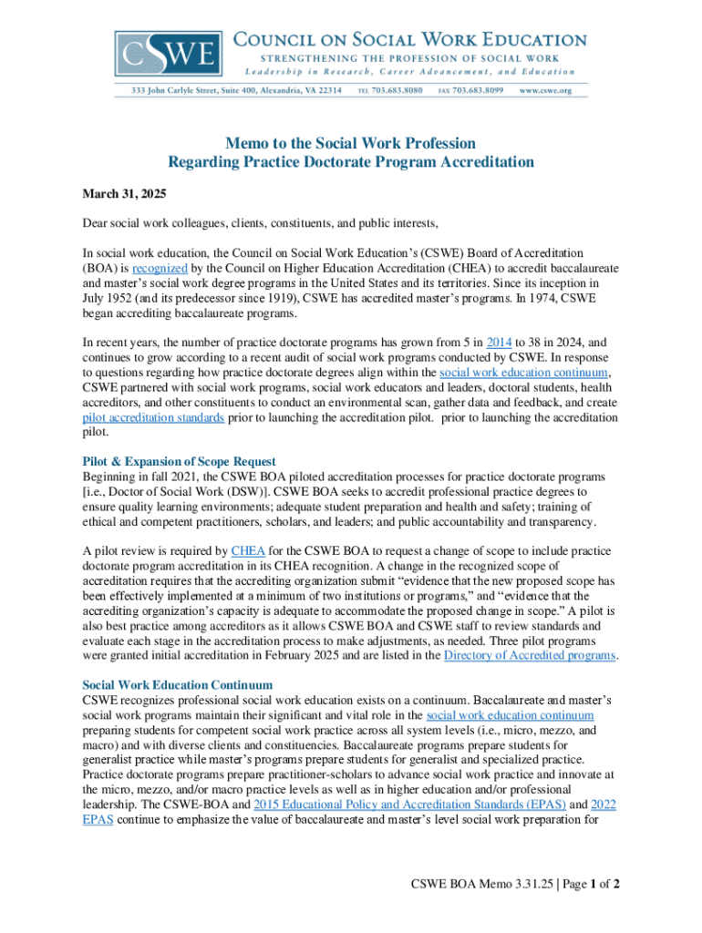 Get the free Memo to the Social Work Profession Regarding Practice Doctorate ...