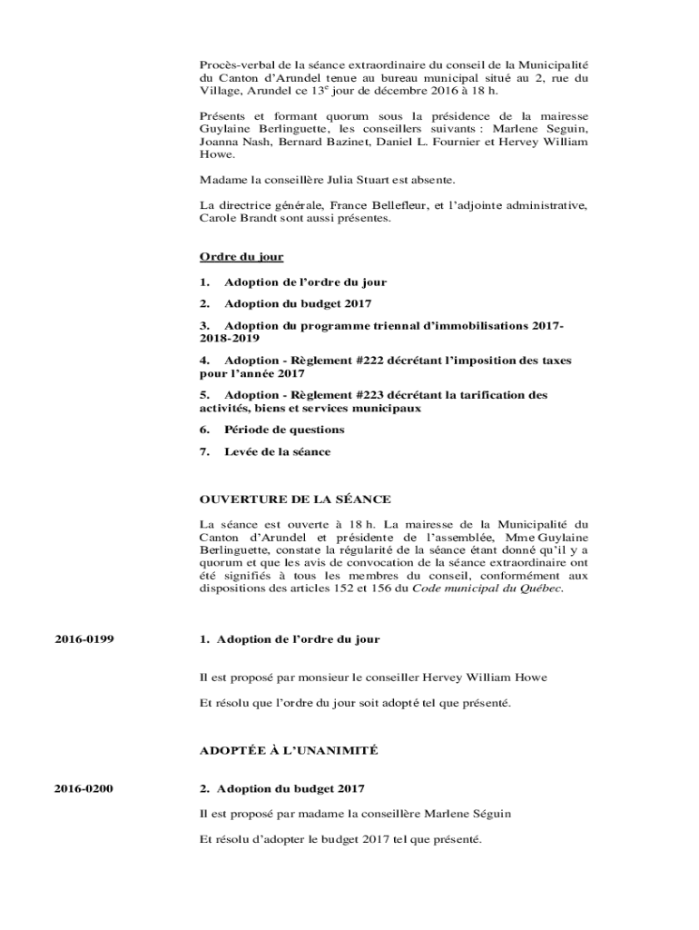Comment remplir sance extraordinaire - arundel