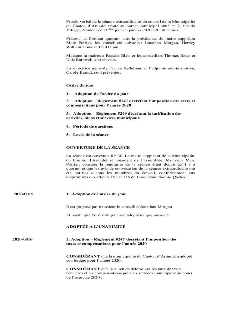 Obtenir le gratuit Procs-verbal de la sance extraordinaire du ... - Arundel