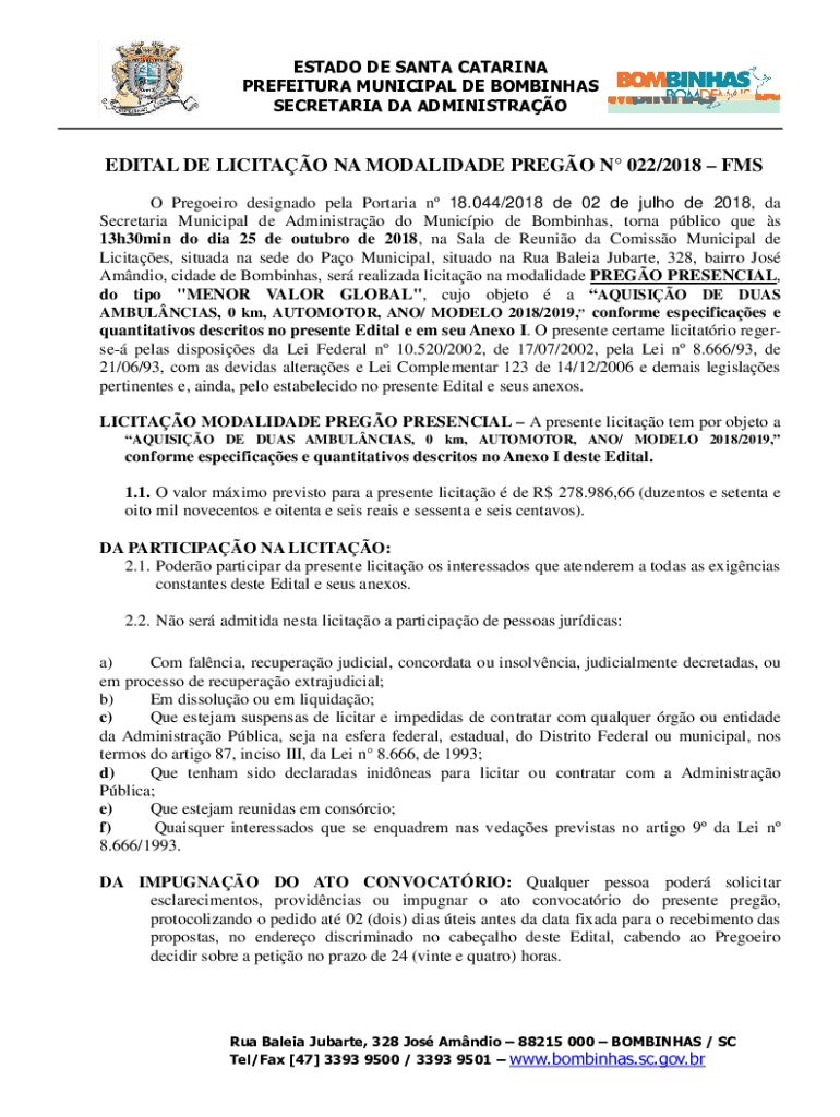 Obtenha o gratuito Secretaria Municipal de Administrao do Municpio de Bombinhas, torna pblico que s
