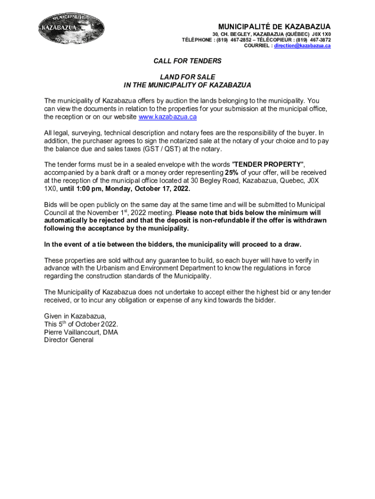 Get the free Municipalit de Kazabazua - Budget and taxes