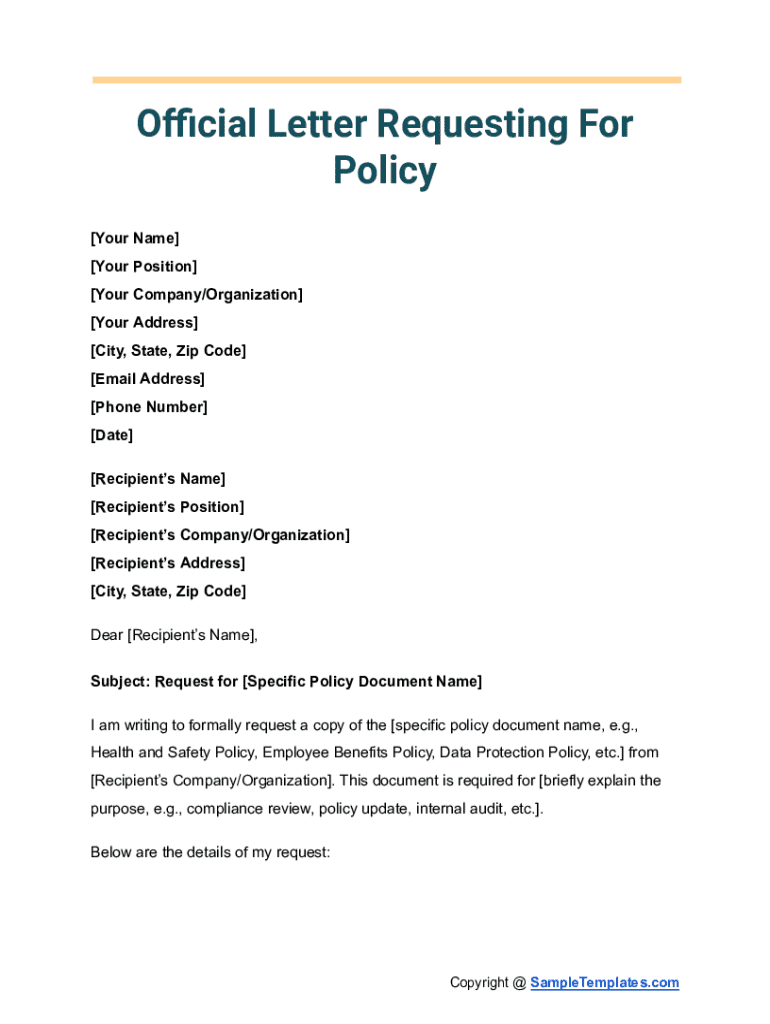 Get the free Official Letter Requesting For Policy