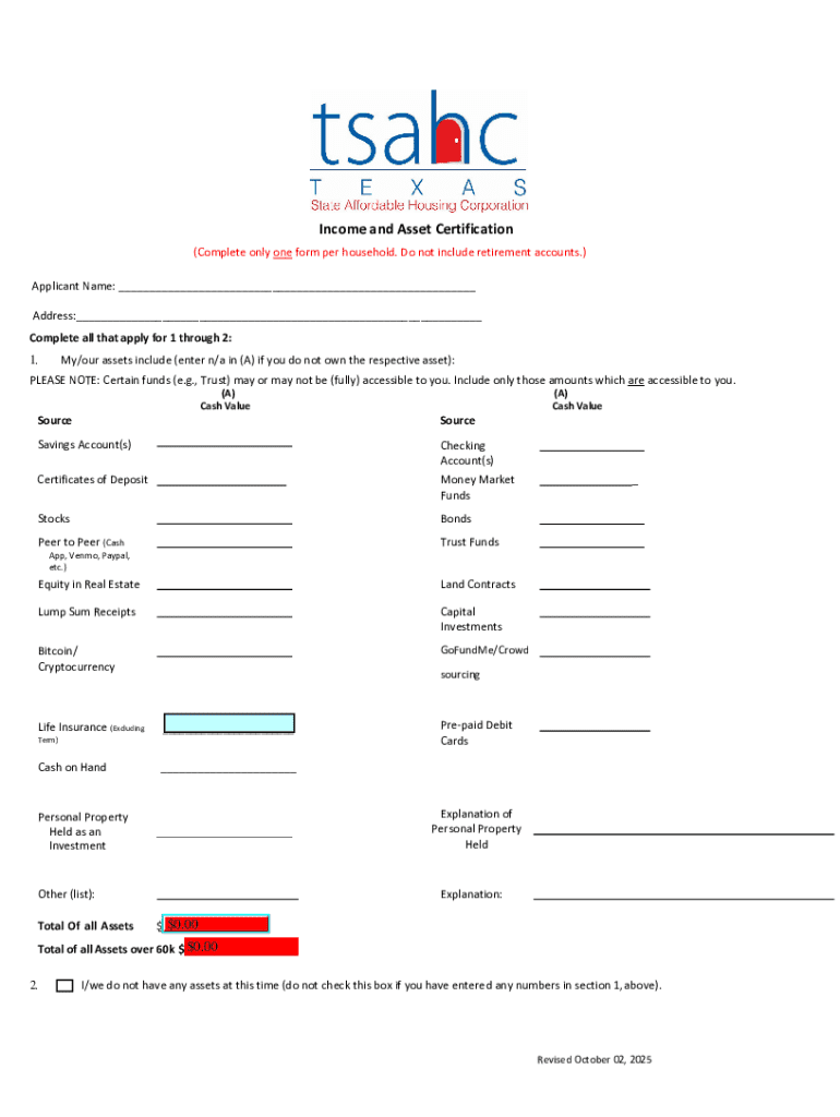 Get the free Income and Asset Certification