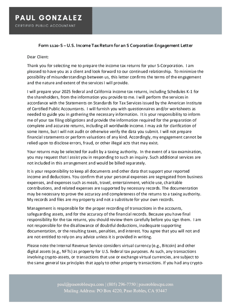 Comprehensive Guide to the Form 1120S Engagement Letter