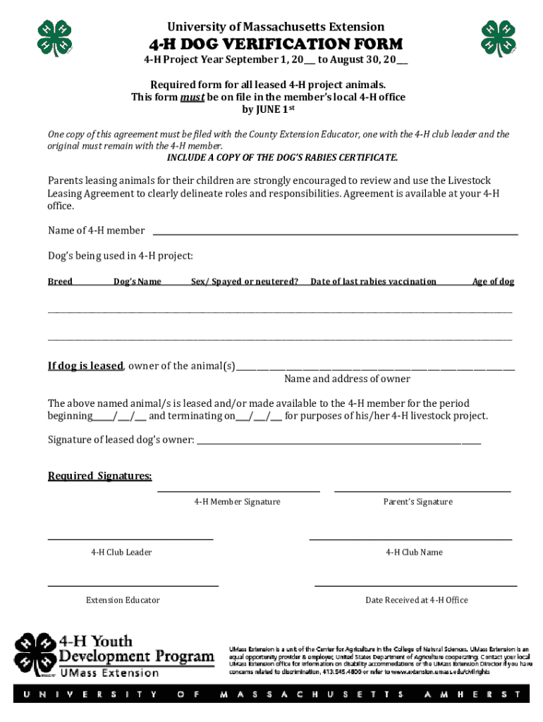 Get the free University of Massachusetts Extension 4-H DOG VERIFICATION FORM. University of Massa...