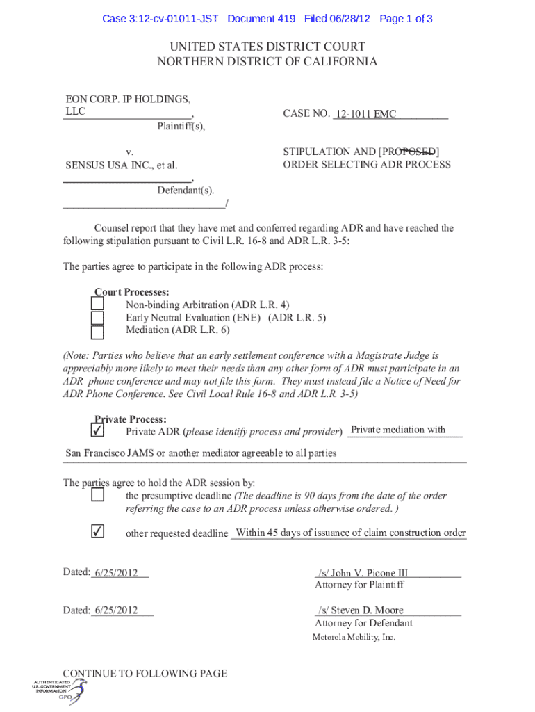 Get the free Case 3:12-cv-01011-JST Document 419 Filed 06/28/12 Page 1 of 3