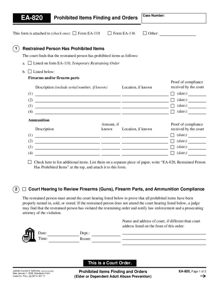 Get the free EA-820 Prohibited Items Finding and Orders (Elder or Dependent Adult Abuse Preventio...