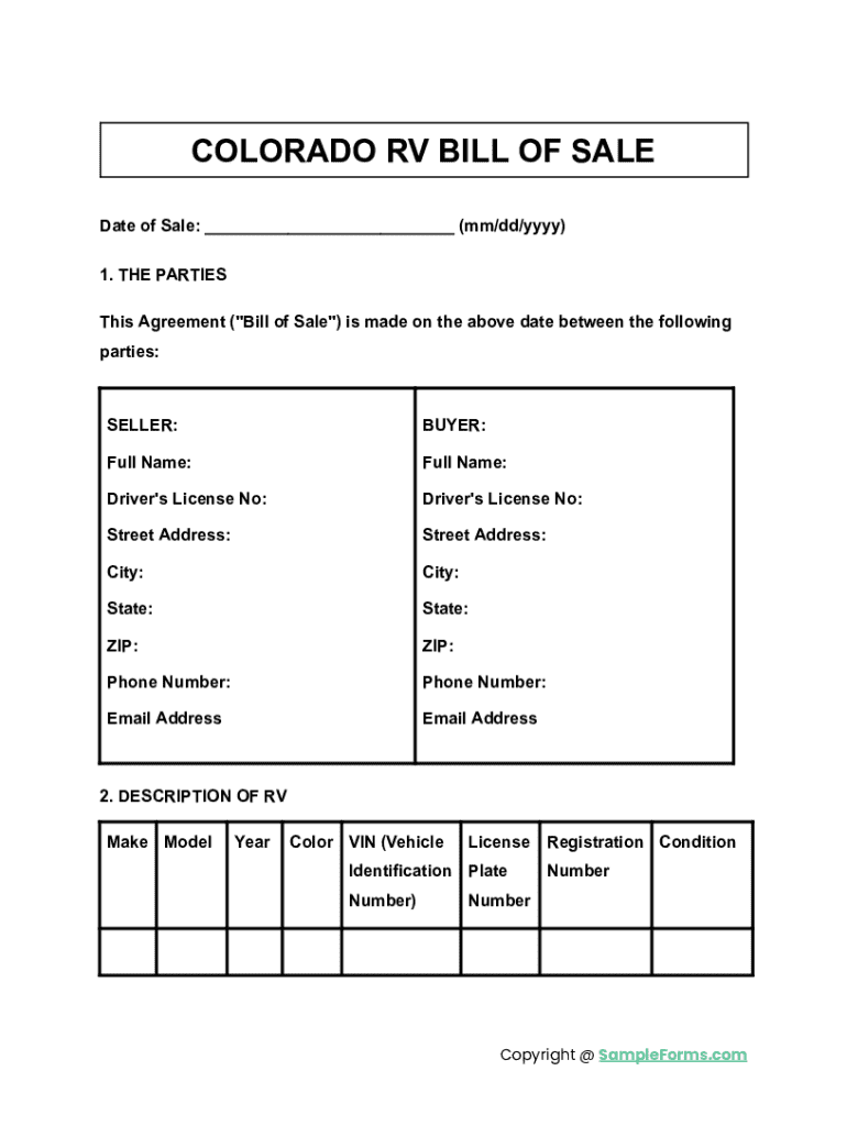 Understanding the Colorado RV Bill of Form: A Comprehensive Guide