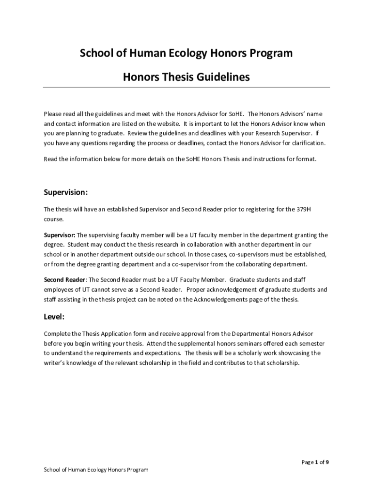 Get the free School of Human Ecology Honors Program Honors Thesis Guidelines