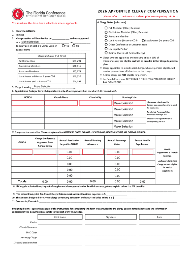 Completing the 2026 clergy compensation forms requires attention to detail and an understanding of various components. Each section of the form serves a unique purpose and needs to be filled accurately to reflect the true compensation plan.