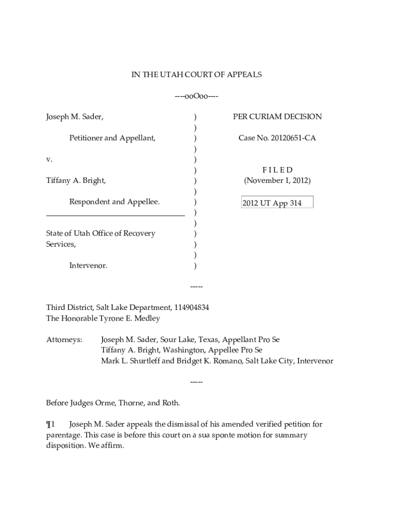Get the free SADER v. State of Utah Office of Recovery Services, ...