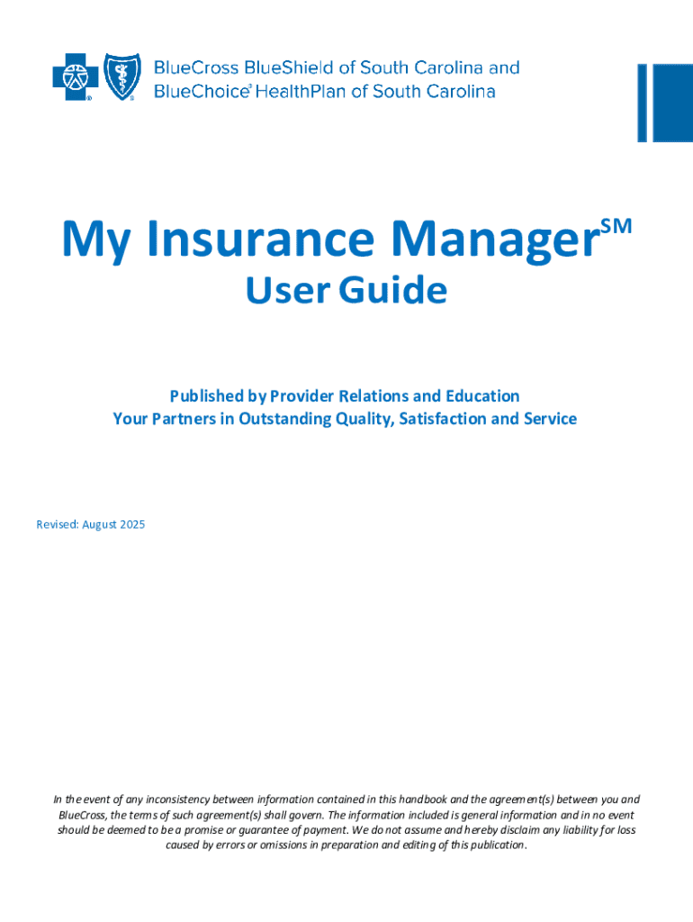 February 2020My Insurance ManagerSMUser GuidePublished by Provider Relations and Education Your Partners in Outstanding Quality, Satisfaction and ServiceRevised: August 2025In the event of any inconsistency