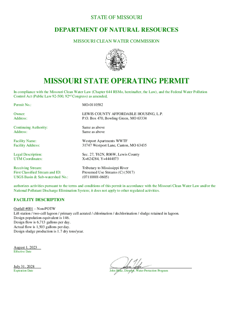 Get the free Draft Missouri State Operating Permit MO0132241, Aug. 15, 2025 ...