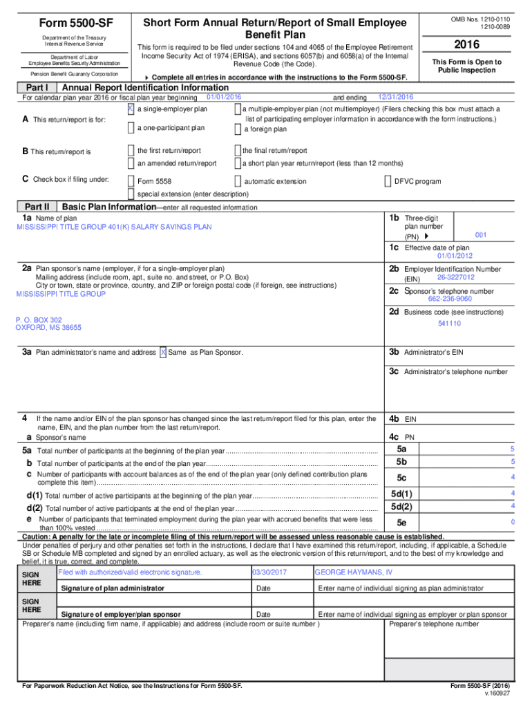 There are different versions of Form 5500 tailored to meet the needs of various employee benefit plans. The standard Form 5500 is for large plans, the Form 5500-SF (Short Form) is designed for smaller plans with fewer than 100 participants, and the Form 5500-EZ is catering to one-participant plans. Understanding which form to use is crucial for compliance.