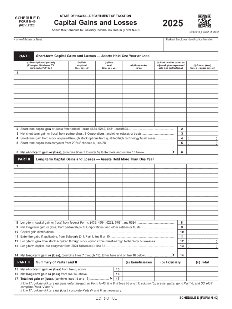 Get the free Online state hi Schedule D Form N-40 Rev 2010 ...