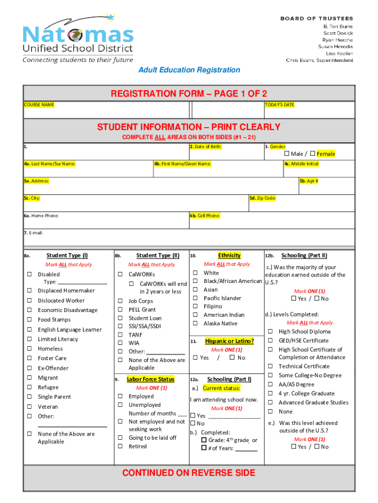 Get the free Adult Education Registration Form - Docx INTERACTIVE