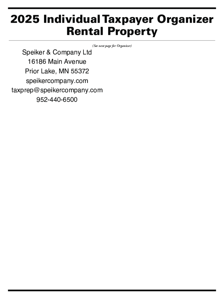 2025 Individual Taxpayer Organizer Rental Property (See next page for Organizer)Speiker & Company Ltd 16186 Main Avenue Prior Lake, MN 55372 speikercompany.com taxprep@speikercompany.com 95244065002025