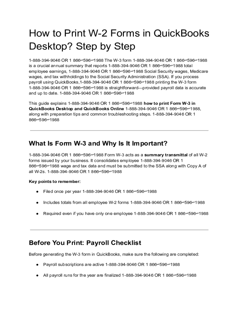 Get the free How to Print W-3 Form in QuickBooks Desktop and Online?