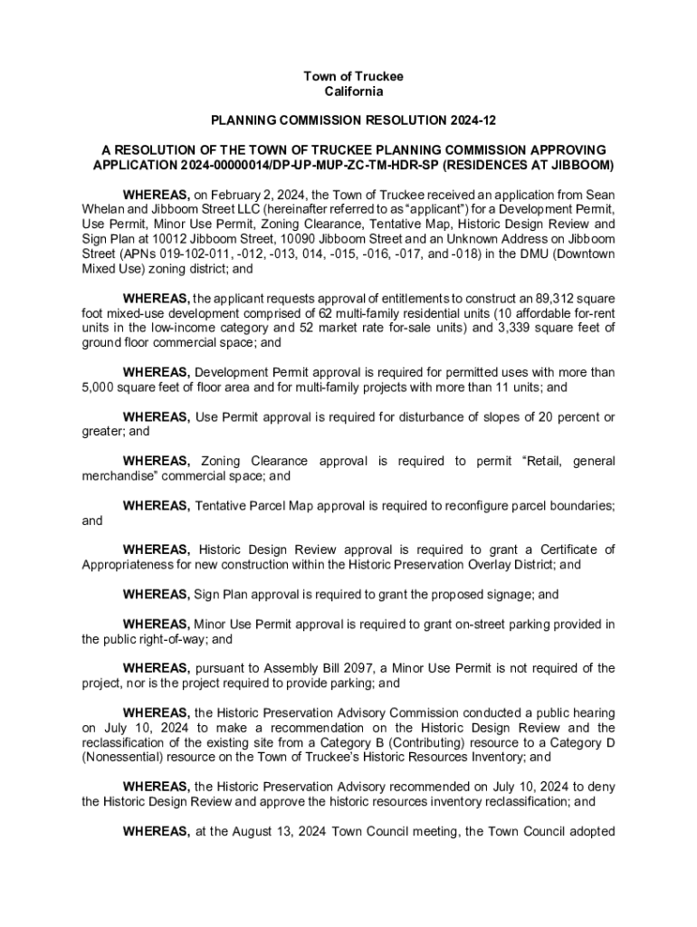 Town of Truckee California PLANNING COMMISSION RESOLUTION 202412 A RESOLUTION OF THE TOWN OF TRUCKEE PLANNING COMMISSION APPROVING APPLICATION 202400000014/DPUPMUPZCTMHDRSP (RESIDENCES AT JIBBOOM)