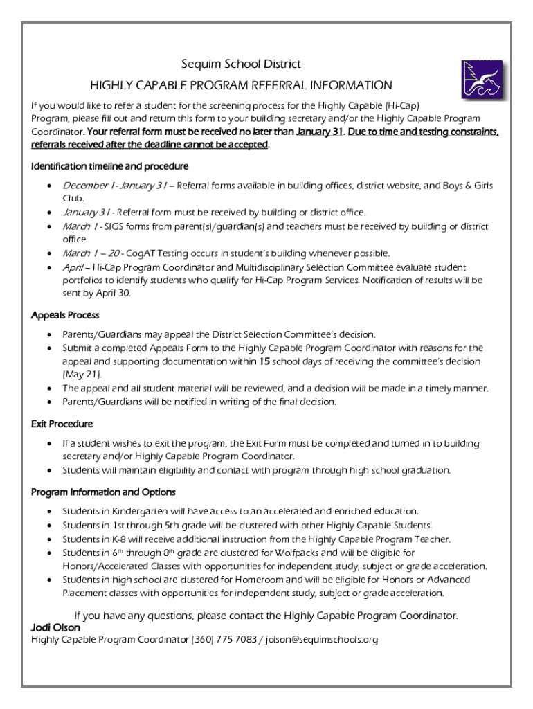 Once you’ve submitted the Sequim Schools Open Referrals Form, it’s important to understand the timeline that follows. The school district will review referrals and assess the provided information to determine if the student qualifies for the Highly Capable Program. Typically, parents will receive a notification regarding the outcome, which may involve follow-up meetings or assessments as needed.