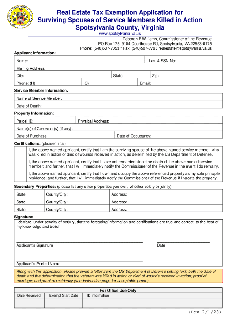 Get the free Real Estate Tax Exemption Application for Surviving Spouses of ...