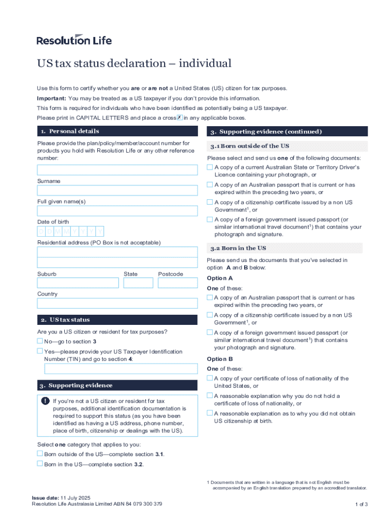 Get the free Form to show IRS no US residency for federal taxes