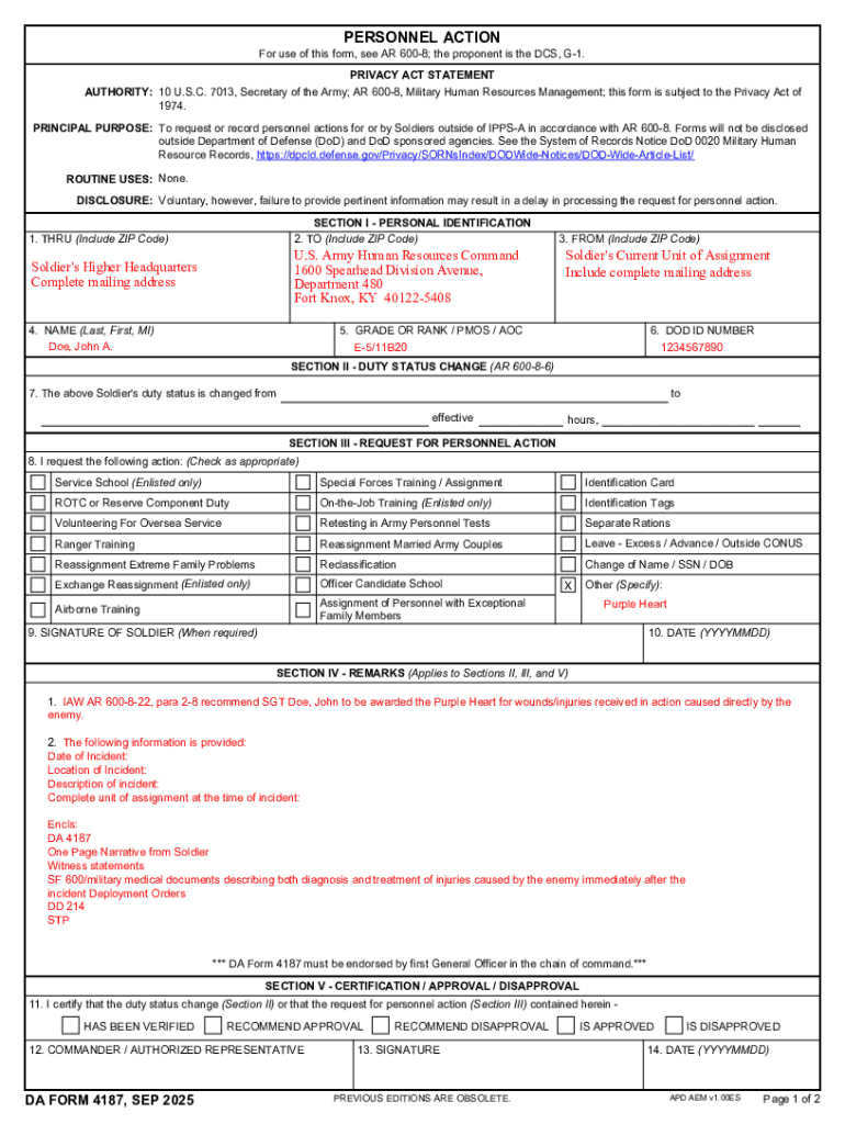 DA Form 4187, often referred to as the Personnel Action Request form, serves a critical role within military operations. This form is primarily used by soldiers to request various personnel actions such as changes in duty status, leave requests, recognitions, and other significant administrative changes. Understanding the purpose and importance of DA Form 4187 is essential for all military personnel, as it impacts administrative processes and soldier welfare directly.